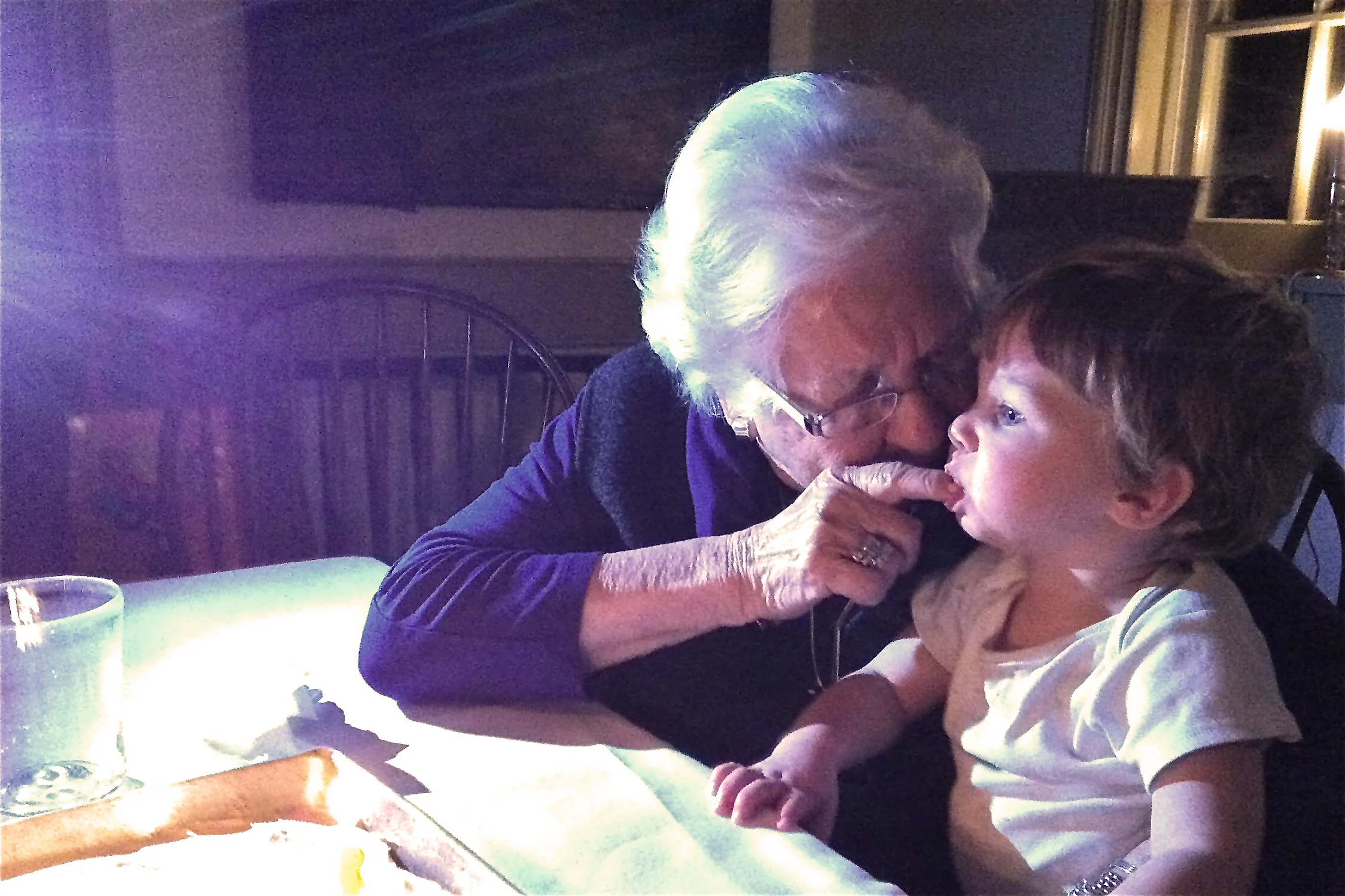 My earliest memory of my grandmother was sitting on her lap at the kitchen table. I must’ve been just a toddler. I remember touching her shiny filigree rings and tracing with my finger the soft blue veins that ran up the top of her hands. I thought that must mean she was very old. I realize now she was probably then only a handful of years older than I am now.